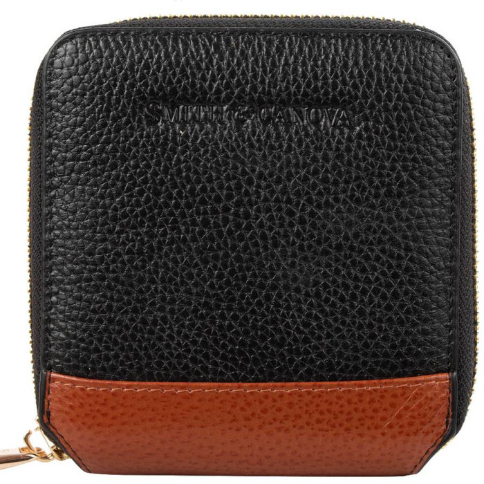 Чорний гаманець зі шкіри відмінною вичинки пропонує Вам англійська торгова марка СМИТЭНДКАНОВА. Примірник з модельного ряду компактних варіантів красиво оформлений зовні додаванням коричневою вставки і блискавки з металевими золотистого кольору зубцями і собачкою. Назва бренду не виділено яскраво, воно у вигляді відбитка скромно, з гідністю прикрашає лицьову сторону. Привабливий зовні ансамбль стане стильним доповненням Вашого гардеробу. Пристрій аксесуара радує набором достатньої кількості відділень і кишень для зручного поводження з готівкою і самими необхідними картами. Купити міцний, довговічний гаманець-портмоне, який виглядає оригінально і стильно, Вам пропонує інтернет-магазин «ЕМІЛІ». Ціна новинки - вигідна.