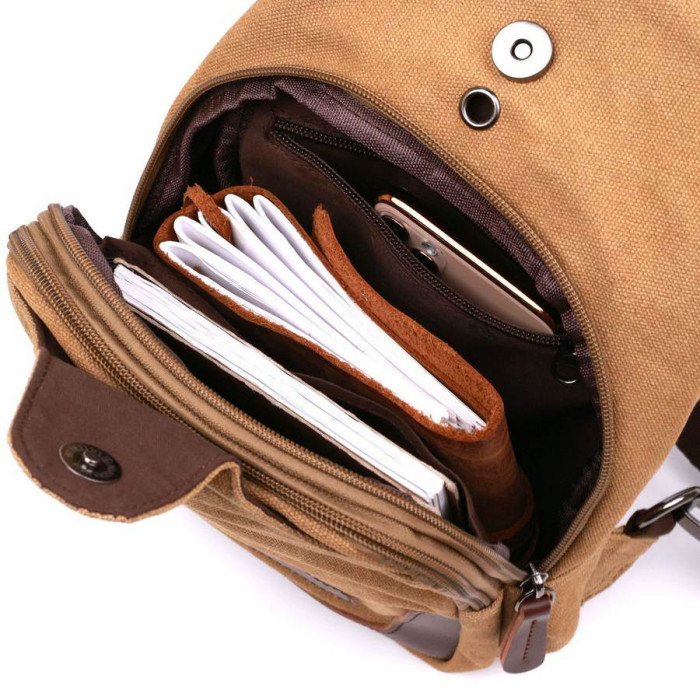 Чудова та багатофункціональна чоловіча сумка крос-боді для чоловіків будь-якого віку. Матеріал виготовлення – високоміцний текстиль, який стійкий до зношування під час експлуатації. Колір виробу – пісочний із коричневими шкіряними вставками. Для Вашої зручності в сумці є просторі та місткі відділення та кишені, тому все необхідне буде під надійним захистом.
