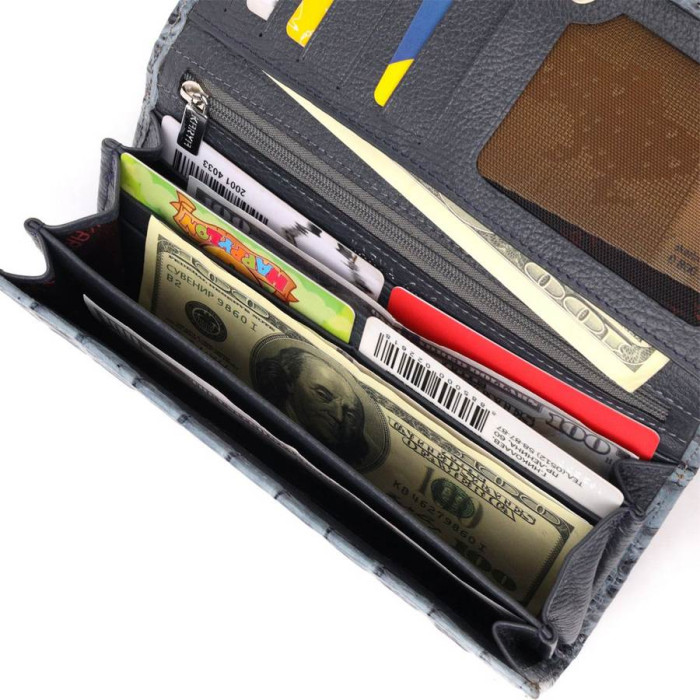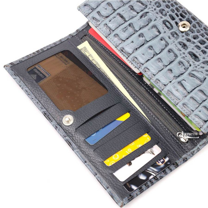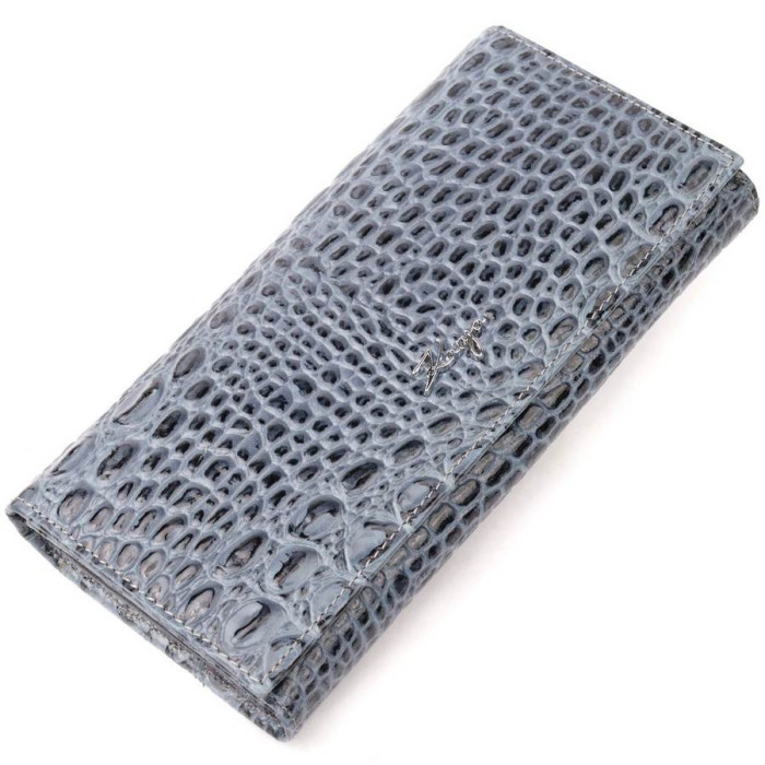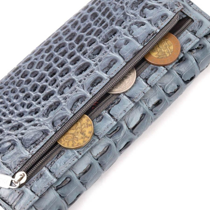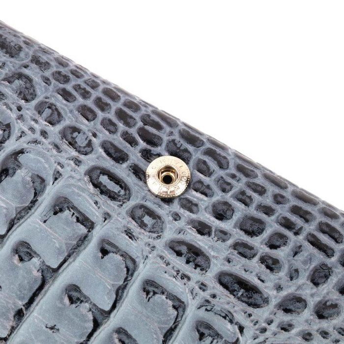 Цікавий жіночий гаманець із натуральної шкіри, з тисненням під крокодила. Складається аксесуар навпіл, закривається клапаном на кнопку. Якісна фурнітура доповнює та прикрашає виріб. Такий гаманець з натуральної шкіри - це ідеальний варіант на кожен день для тих, хто цінує якість, зручність та комфорт, а також чудово доповнюватиме Ваш повсякденний образ. Запакований аксесуар у фірмову коробку та пакет бренду. Вироби з натуральної шкіри завжди будуть чудовим подарунком для близької людини.