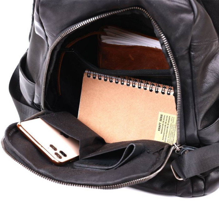 Практичний та функціональний рюкзак з натуральної високоякісної шкіри з відмінними показниками міцності та стійкості до зношування. Внутрішнє наповнення дуже багате і представлене у вигляді просторого основного відділення та різних кишень різного розміру. Шлейки регулюється по довжині та зроблені у поєднанні міцного текстилю та натуральної шкіри.