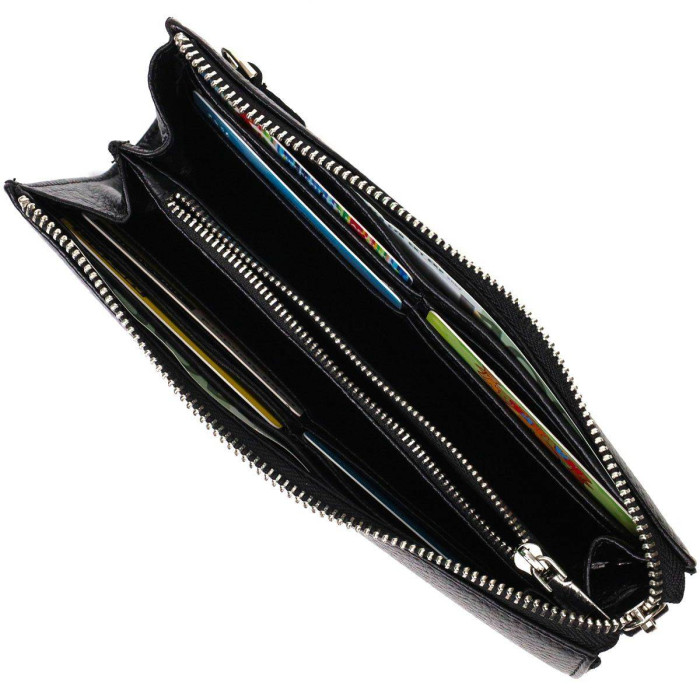 Універсальний чоловічий клатч із натуральної якісної шкіри, закривається виріб на блискавку, всередині можна без проблем розміщувати паперові банкноти, банківські картки та навіть смартфон. Аксесуар складається з двох відділень для купюр, двох прилеглих кишень, дванадцяти слотів для кредиток та монетниці на блискавці. Є також ручка для долоні на тильній стороні клатчу та знімний кистьовий ремінь. Продається клатч у красивій коробці від виробника. Якісний і надійний клатч - саме такий аксесуар повинен бути у кожної людини, що поважає себе.