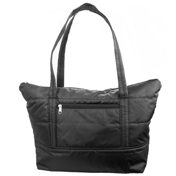 Розміри (X * Y * Z): 48 х 32 х 16 см. Колір: чорний. Колір фурнітури: срібло. Матеріал: тканина. Матеріал підкладки: тканина. Кількість основних відділень: 1. Всередині є 2 накладних кишені. Гарантія: 1 місяць. На тильній стороні є прорізна кишеня на блискавці. Аксесуар можна носити в руці, на плечі або на лікті. Модель закривається за допомогою блискавки. Документи формату А4 поміщаються в сумку. Сумка упакована в поліетиленовий пакет. Країна походження ТМ Eterno, а також Країна-виробник-Україна.