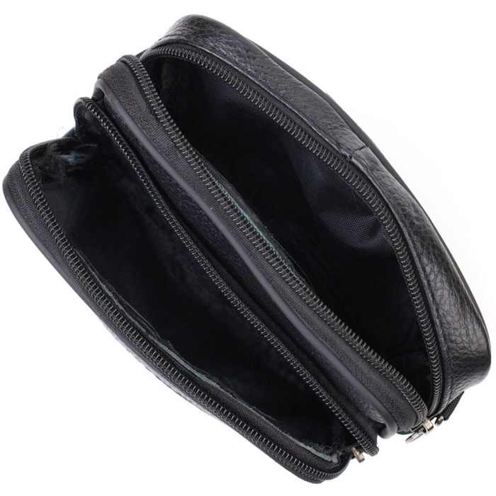 Горизонтальна чоловіча сумка на пояс невеликого розміру з натуральної шкіри. Аксесуар чудово підійде як для роботи, так і в дорогу. Сумка складається з основного відділення, що закривається на блискавку та двох кишень зовні, вони також закриваються блискавками. Носити сумку можна на поясі, є спеціальна шкіряна петелька з тильного боку, а також в комплекті йде текстильний знімний плечовий ремінець. Модель дуже практична та універсальна. Виріб стане чудовим подарунком для будь-якого чоловіка.