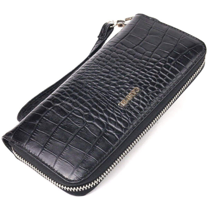 Горизонтальний гаманець для жінок з натуральної фактурної шкіри під крокодила CANPELLINI 21623 Чорний