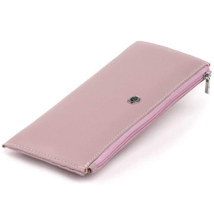 Якісний тонкий гаманець унісекс на блискавці. Колір гаманця оригінальний і неповторний - ліловий. Шкіра має природну структуру. Ми впевнені, що з покупкою нового гаманця настануть приємні зміни в житті. Виріб підійде для дівчат, які люблять пастельні тони. Гаманець в такому кольорі додасть вам легкості і стильності. Усередині гаманця просторі кишені для зручного розміщення купюр, монет і кредиток. У поєднанні з якісною фурнітурою виріб прослужить вам порівняно довго. Підійде гаманець в якості подарунка. Гаманець упакований в фірмову коробку від виробника.