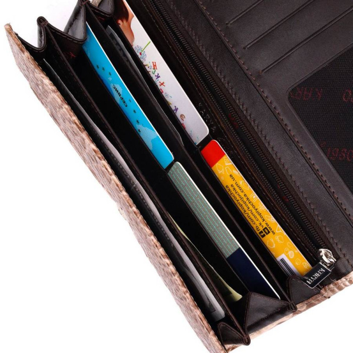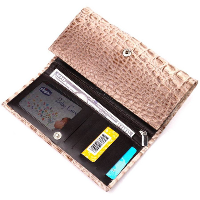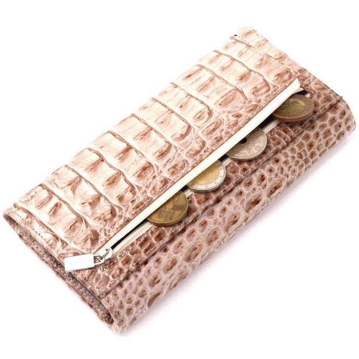 Модний жіночий гаманець із натуральної фактурної шкіри, з тисненням під крокодила. Складається аксесуар навпіл, закривається клапаном на кнопку. Якісна фурнітура доповнює та прикрашає виріб. Такий гаманець з натуральної шкіри - це ідеальний варіант на кожен день для тих, хто цінує якість, зручність та комфорт, а також чудово доповнюватиме Ваш повсякденний образ. Запакований аксесуар у фірмову коробку та пакет бренду. Вироби з натуральної шкіри завжди будуть чудовим подарунком для близької людини.