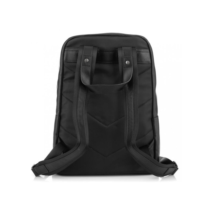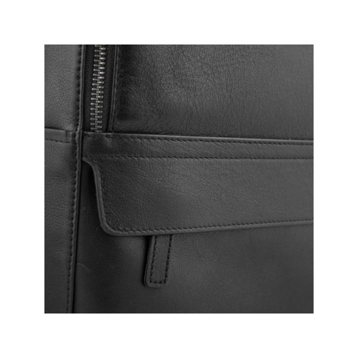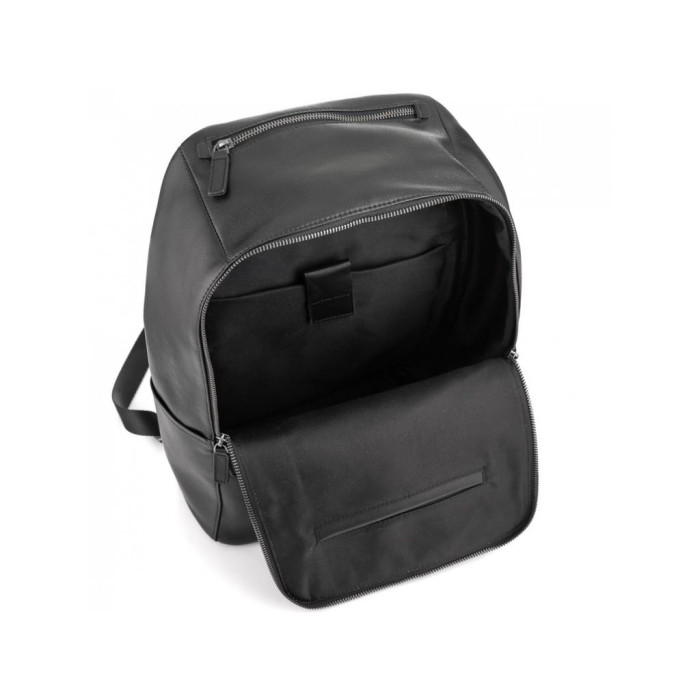 Оснащений зручними шлейками для носіння, шкіряними пуллерами і має текстильну спинку. Рюкзак складається з одного основного відділення, з лицьового боку є кишеня на блискавці захована під клапан, також є маленька кишеня зверху на рюкзаку. З боків є дві кишені відкритого типу. Усередині рюкзак має відділення на липучці для гаджета, кишеню на блискавці і кишеню відкритого типу.