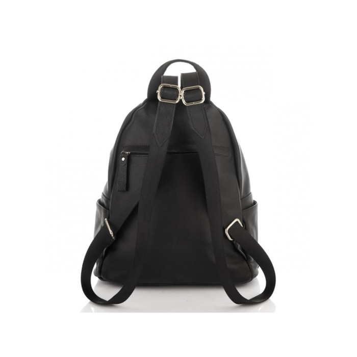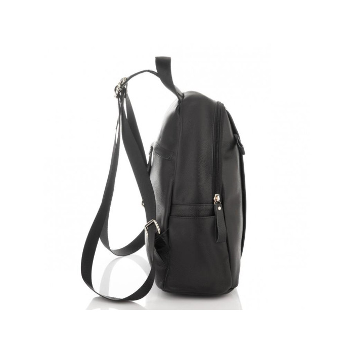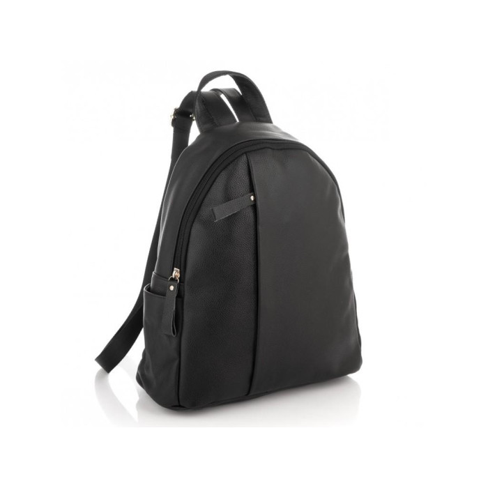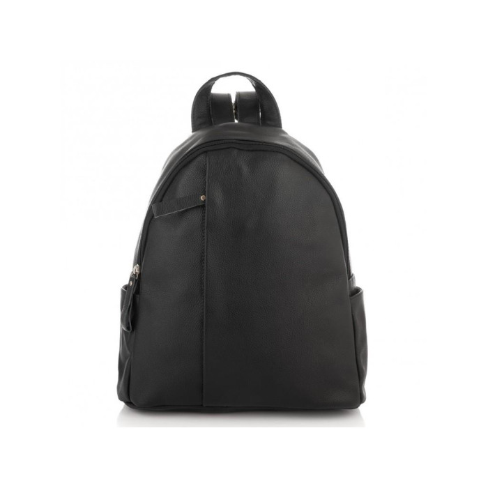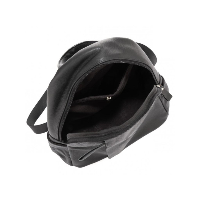 Невеликий жіночий рюкзак чорного кольору на кожен день. Для зручного носіння є ручка. З лицьового боку є вертикальний кишеню на блискавки. Передбачено один основний відділ на блискавці, всередині якого є кишеня перегородка на блискавці. З тильного боку додаткова кишеня на блискавки.