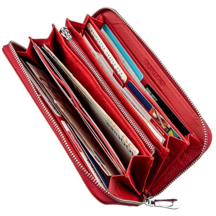 Граціозний жіночий гаманець-клатч з натуральної шкіри, яка має м'яку, приємну на дотик зернисту фактуру. Ваше око обов'язково порадує безпосередній матовий червоний колір гаманця, який надає йому особливого шарму. З таким клатчем будь-яка жінка буде виглядати красиво і незвичайно. Відмінною рисою даного аксесуара є його багатофункціональність, яка виражена великою кількістю різних відділень і безліччю кишень для пластикових карт і візиток. На тильній стороні виробу передбачено відділення на блискавці для монет або інших цінних дрібниць. Якщо Ви шукайте подарунок для коханої жінки, то даний клатч просто знахідка для Вас. Він красивий, стильний і витончений! Упаковано даний виріб в щільну картонну коробку білого кольору.