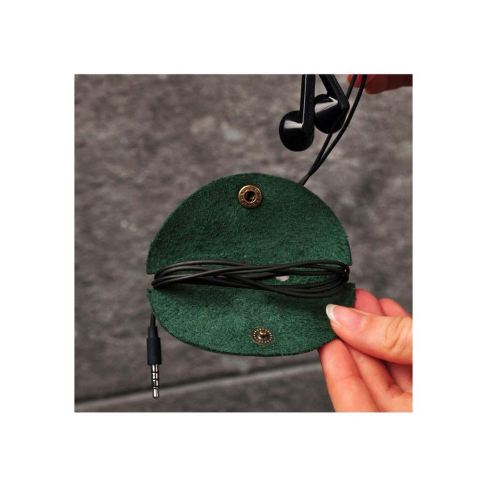 Виготовлений з натуральної шкіри, надійно застібається на кнопку, що не дозволить навушникам розмотатись. Наші майстри подбали про практичність і зручність використання. Щоб зафіксувати навушники, просуньте дріт через отвори в центральній частині холдера, після чого слід обмотати навушники навколо. Ви можете обмотати навушники повністю або залишити необхідну довжину. Холдер для навушників, допоможе заощадити вам час і нерви:)