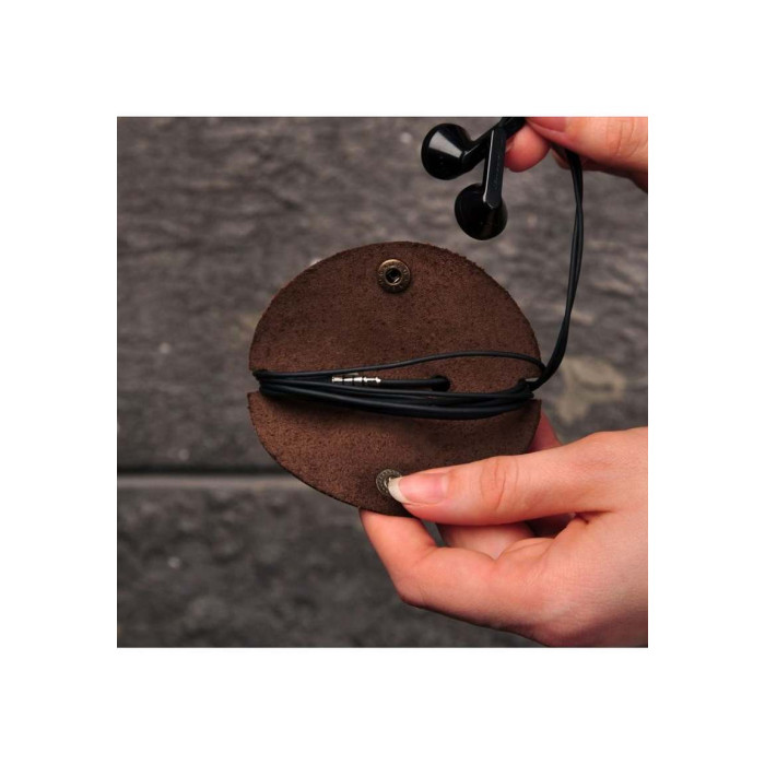 Виготовлений з натуральної шкіри, надійно застібається на кнопку, що не дозволить навушникам розмотатись. Наші майстри подбали про практичність і зручність використання. Щоб зафіксувати навушники, просуньте дріт через отвори в центральній частині холдера, після чого слід обмотати навушники навколо. Ви можете обмотати навушники повністю або залишити необхідну довжину. Холдер для навушників, допоможе заощадити вам час і нерви:)