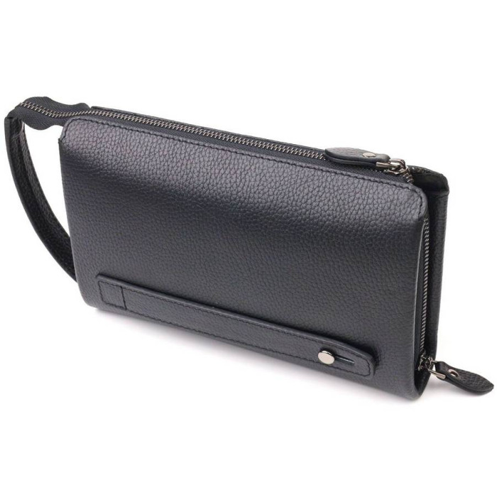 Класичний місткий клатч для чоловіків з натуральної якісної шкіри. Аксесуар має одне основне відділення, всередині якого дві бічні кишені, одна з них на блискавці та кишеня-перегородка на блискавці. Зовні у виробі розташовані дві кишені на лицьовій та тильній стороні. Внизу аксесуара є ремінець для носіння на руці, що дуже зручно у використанні, також є незнімна ручка. Чим зручний клатч - у нього Ви можете покласти все необхідне і все буде під рукою.