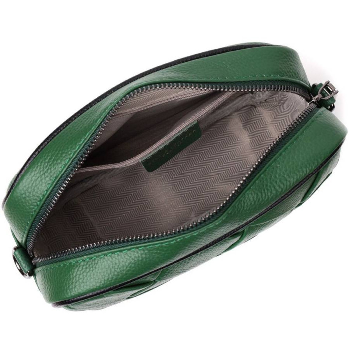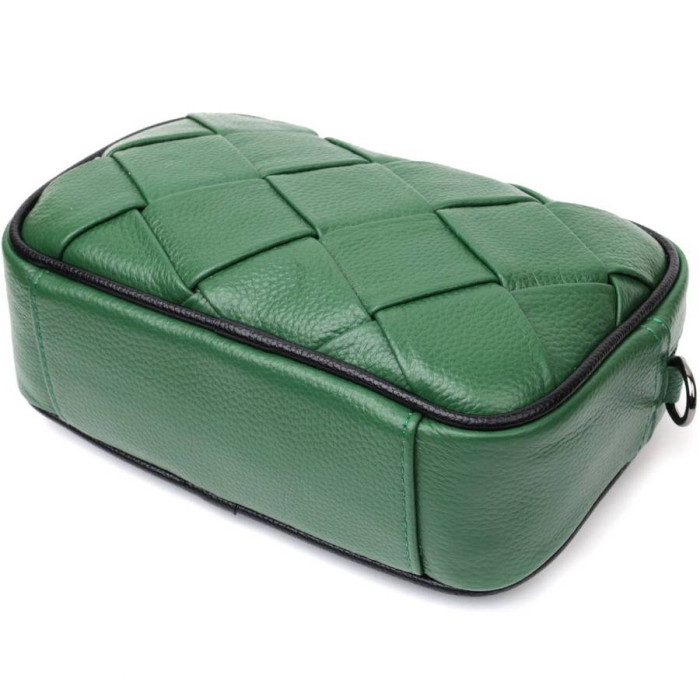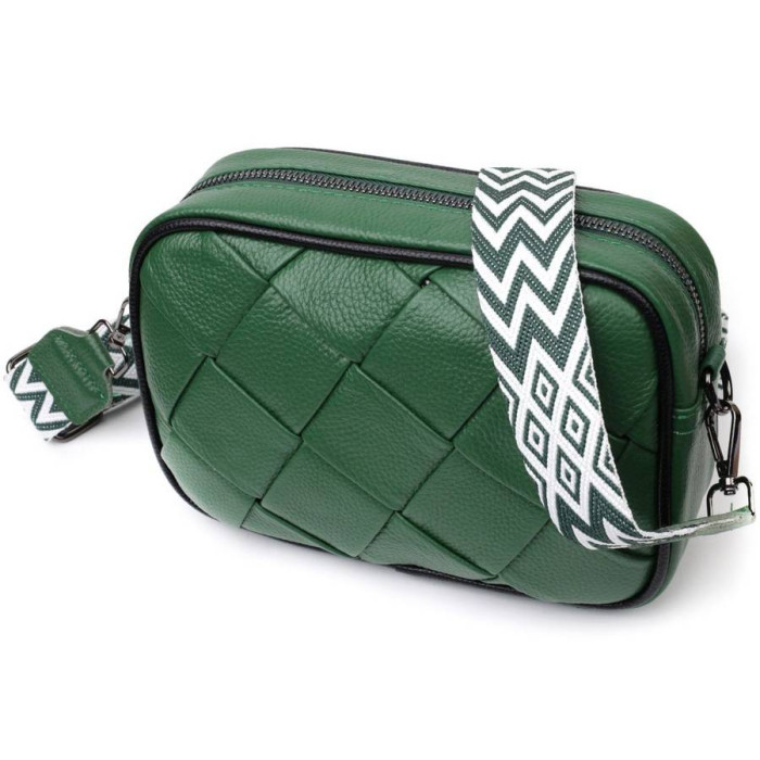 Стильна жіноча сумка з ромбоподібною палітуркою на лицьовій стороні. Виріб пошитий з якісної натуральної шкіри, яка довго носиться і не втрачає свого первісного вигляду. Аксесуар складається з одного основного відділення всередині якого розташована кишеня відкритого типу і кишеня на блискавці, також зовні розташована кишеня на блискавці, на тильній стороні. Носити сумку можна в руці як клатч, на плечі та через плече, для цього є текстильний ремінь, що знімається. У виробі використано якісну фурнітуру кольору темного срібла. Універсальний варіант сумки як на вечір так і як сумочка на кожен день.