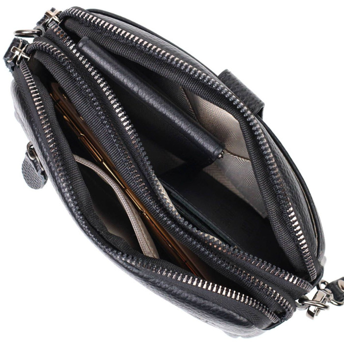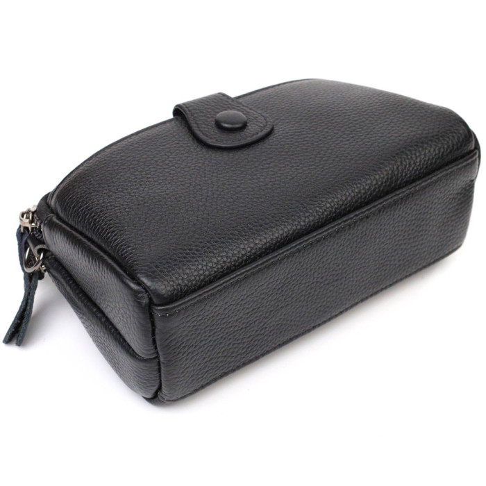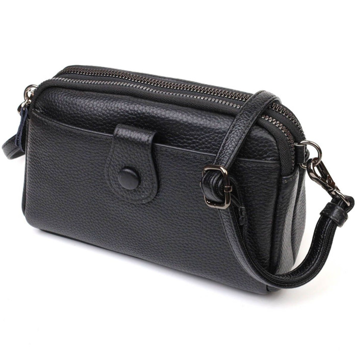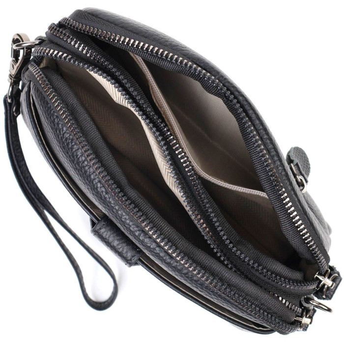 Стильна невелика сумка-клатч із натуральної м'якої шкіри високої якості. Виріб дуже зручний, можна носити на плечі, через плече, під рукою та на кисті. Модель доповнена фурнітурою кольору темного срібла. Аксесуар має два основні відділення на блискавках, в яких дві кишеньки - на блискавці та одна відкритого типу, також зовні знаходяться дві кишені. У комплекті до сумки йде знімний плечовий ремінь та знімний кистьовий ремінь. Модель закривається на блискавку.