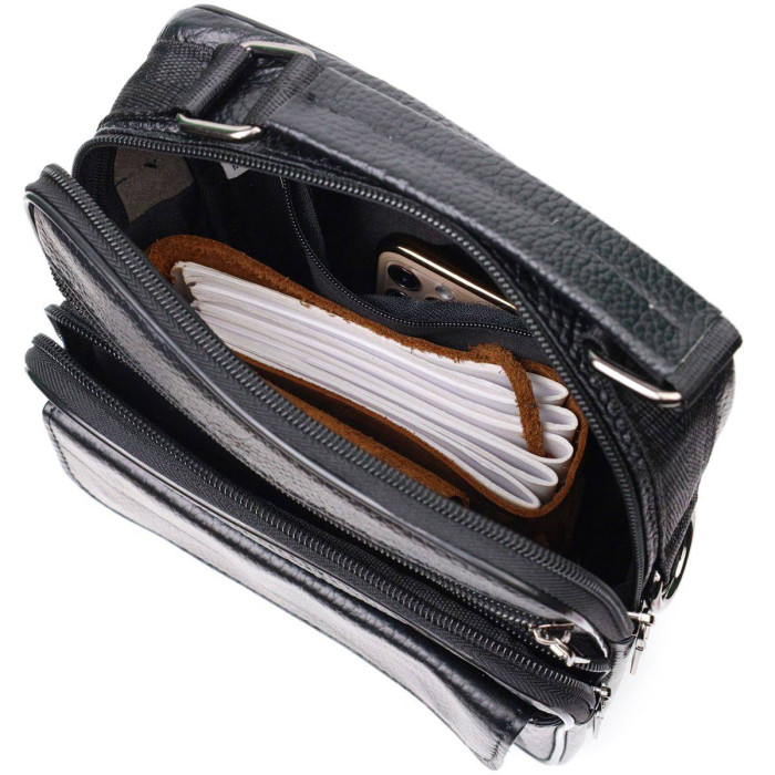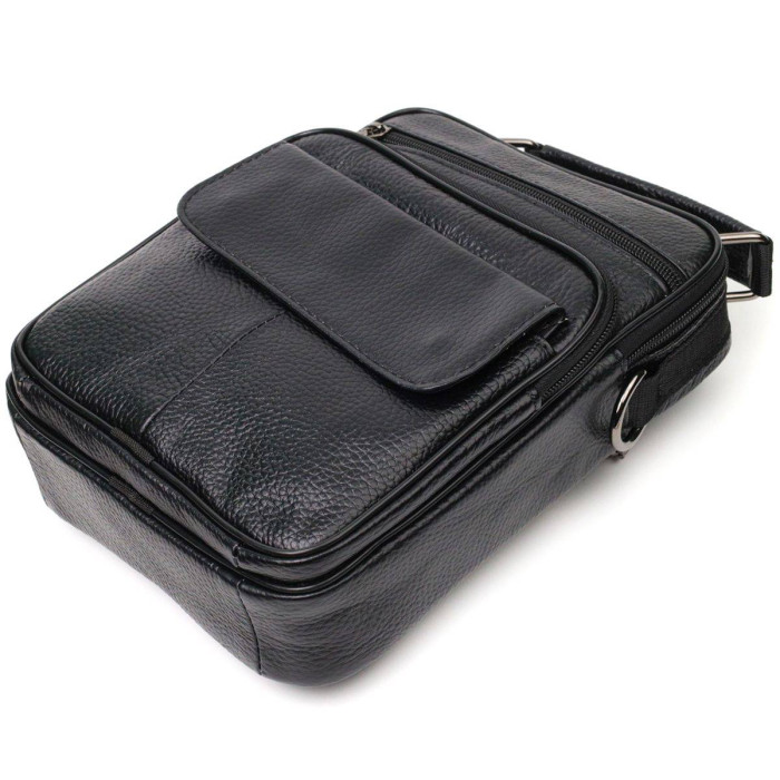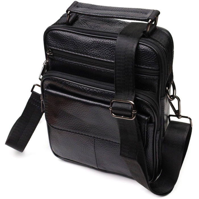 Стильна чоловіча сумка з натуральної шкіри. Аксесуар складається з основного відділення на блискавці, потайної кишені всередині, накладної кишені на блискавці, на лицьовій стороні, вбудованої кишені на блискавці на лицьовій стороні, вбудованої кишені під клапаном на магнітах, на лицьовій стороні та двох горизонтальних кишень на блискавках ззаду. Носити сумку можна на плечі, через плече, а також у руках за ручку. Ідеальний варіант як для ділового, так і для міського стилю.
