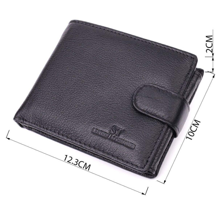 Багатофункціональний гаманець для ділових чоловіків, які цінують якість і практичність. Аксесуар місткий із натуральної шкіри, він складається з двох містких відділень для купюр, двох кишень на блискавках, чотирьох кишень під плівкою, які знаходяться в одному блоці і закриваються хлястиком на кнопку, трьох осередків для карт, двох прихованих кишень та кишені для монет. Портмоне доповнено надійною фурнітурою та міцною підкладкою. Запакований гаманець у фірмову картонну коробку білого кольору.