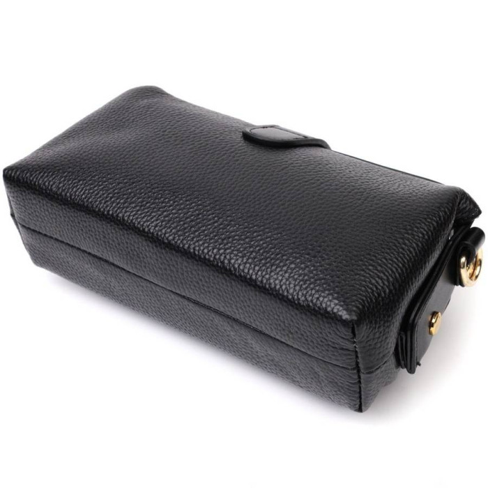Жіноча сумка з незвичайною клямкою, яка однозначно приверне погляди оточуючих. Виріб пошитий з якісної натуральної шкіри, яка довго носиться і не втрачає свого первісного вигляду. Аксесуар складається з одного основного відділення всередині якого розташована кишеня відкритого типу та кишеня на блискавці. Носити сумку можна в руці як клатч, на плечі і через плече, для цього є шкіряний ремінь, що знімається. У виробі використано якісну фурнітуру кольору жовтого золота.