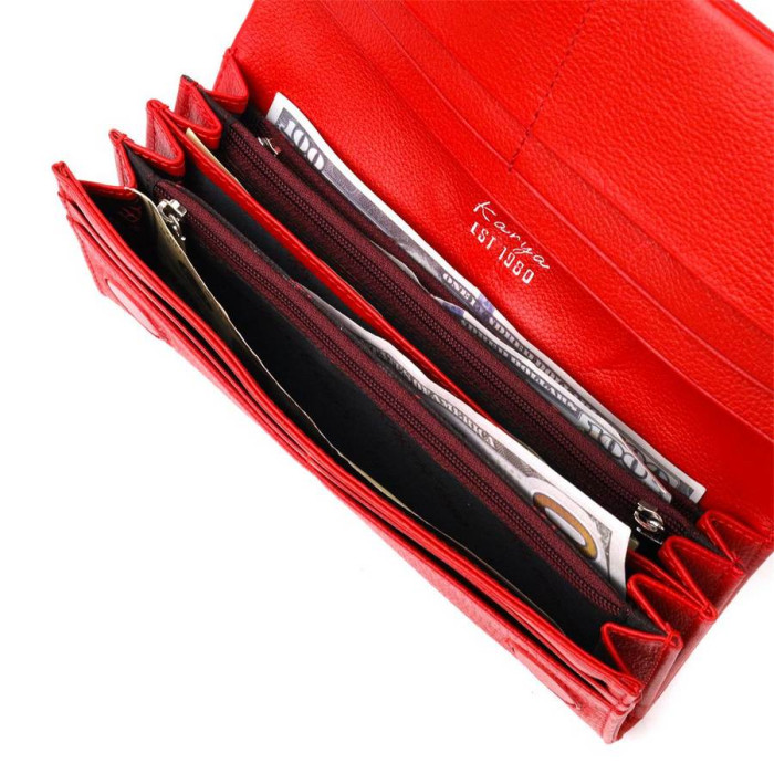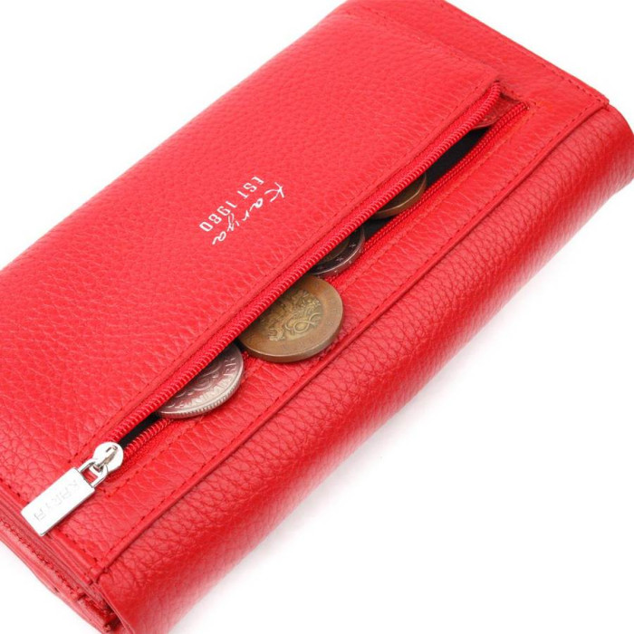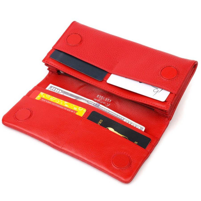 Яскравий жіночий гаманець із натуральної зернистої шкіри. Складається аксесуар навпіл, закривається клапаном на магніти. Якісна фурнітура доповнює та прикрашає виріб. Такий гаманець з натуральної шкіри - це ідеальний варіант на кожен день для тих, хто цінує якість, зручність та комфорт, а також чудово доповнюватиме Ваш повсякденний образ. Запакований аксесуар у фірмову коробку та пакет бренду. Вироби з натуральної шкіри завжди будуть чудовим подарунком для близької людини.