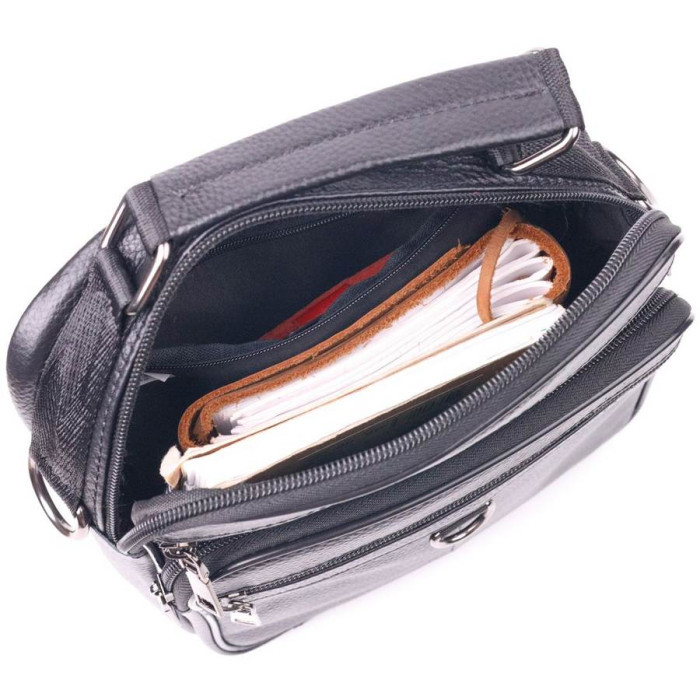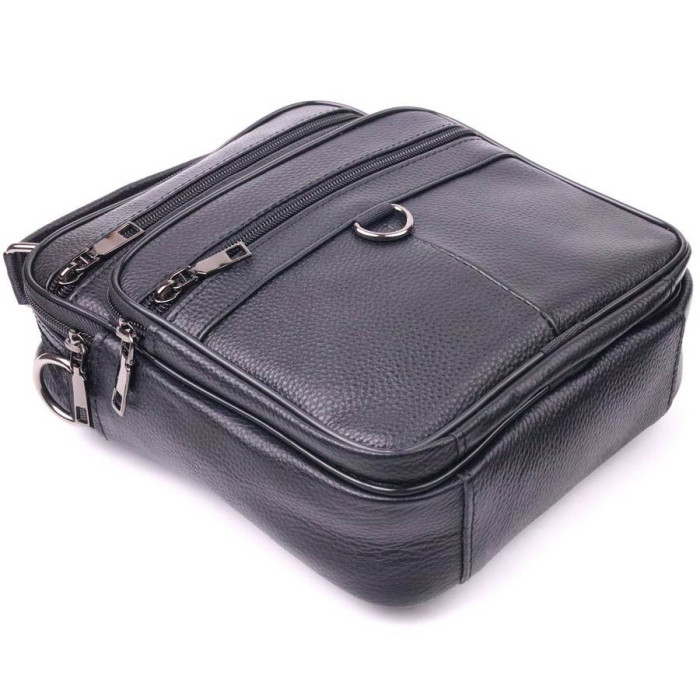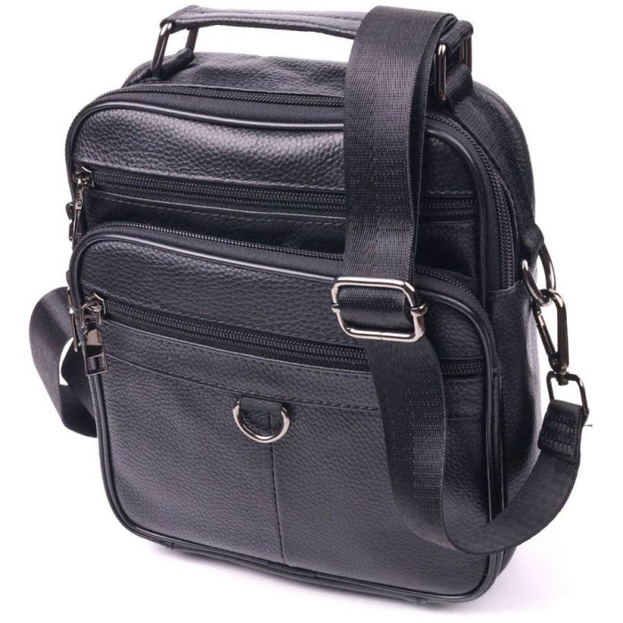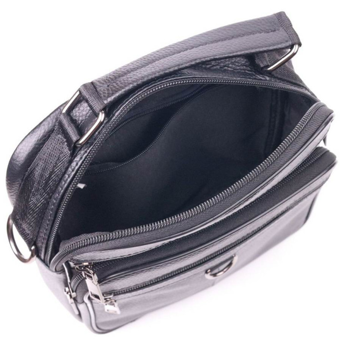 Сучасна чоловіча сумка середнього розміру із натуральної шкіри. Модель, яка ідеально підійде на кожен день. В аксесуарі одне основне відділення та п'ять кишень різних розмірів, сумку можна носити як у руці, так і на плечі. У сумку з легкістю помістяться всі необхідні речі. З таким аксесуаром усі Ваші речі будуть гаразд, з ним також буде зручно ходити на роботу чи зустрічі. Доповнено виріб якісною фурнітурою, темно-срібло кольору. Сумка стане чудовим подарунком для близької людини.