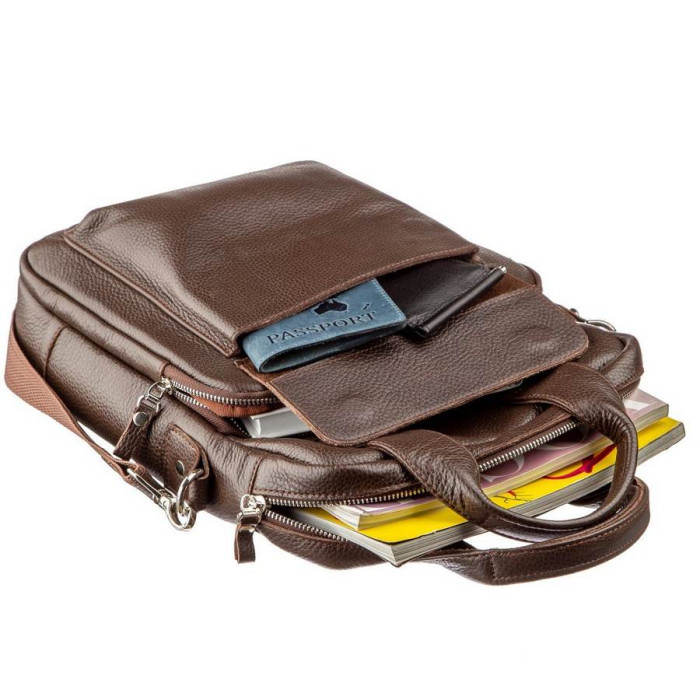 Якісна чоловіча сумка вертикального формату від Українського виробника. Добре підійде для вас, якщо ви перебуваєте в пошуку сумки під А4. Сумка не громіздка. М'яка, виконана зі шкіри флотар, яка дуже добре зарекомендувала себе в невибагливості у догляді і хорошою зносостійкістю. На шкірі такого плану практично не видно ні подряпин ні потертостей, які можуть з'явитися з часом після вашої експлуатації. Сумка чудово підходить під будь-який стиль. Аксесуар ви можете носити як в руках, так і через плече. Усередині сумки якісна текстильна підкладка коричневого кольору. Вся фурнітура сріблястого кольору. Якщо ви в пошуках подарунка для чоловіка - подаруйте йому сумку з натуральної шкіри. Класичний дизайн і висока якість, безсумнівно, порадують власника такого подарунка.