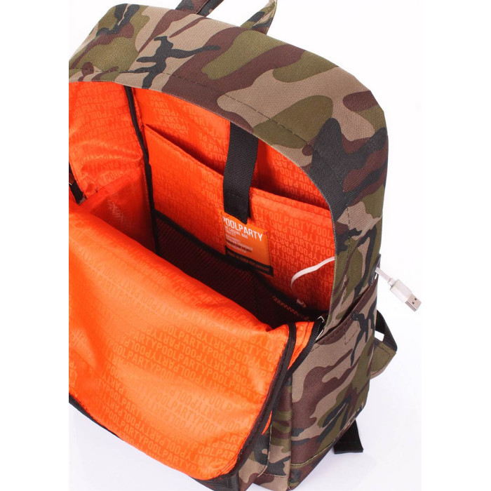Одне відділення, зовнішня кишеня, застібка "блискавка", вихід для навушників і power bank, внутрішнє..