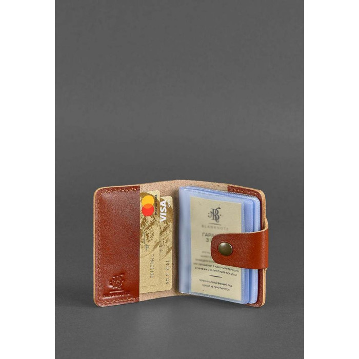 Цей аксесуар виготовлений у вигляді книжечки, все картки можна зручно і компактно розкласти в прозорі відділення. І для того, щоб знайти певну картку не потрібно переглядати всі. А шкіряна обкладинка виглядає неймовірно стильно і солідно. Також є дві кишені з внутрішньої сторони обкладинки.