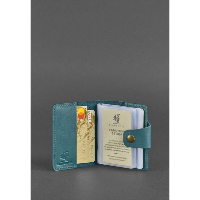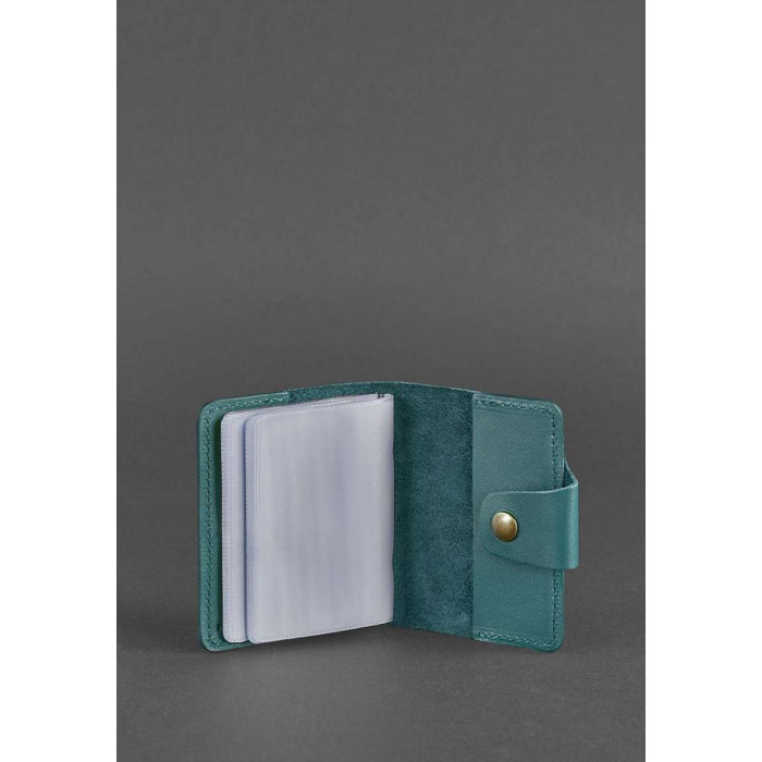 Обкладинка корд-кейсу виготовлена з міцної натуральної шкіри краст модного бірюзового кольору. На внутрішній стороні обкладинки є пара кишеньок.