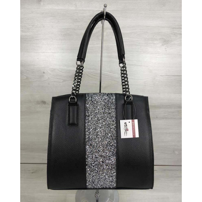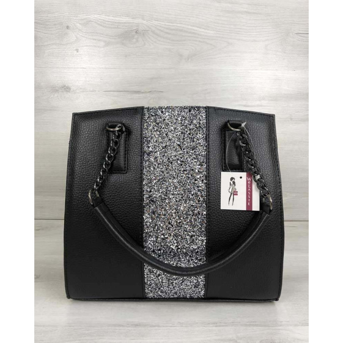 Каркасна жіноча сумка Адель чорного кольору зі вставкою блиск WeLassie