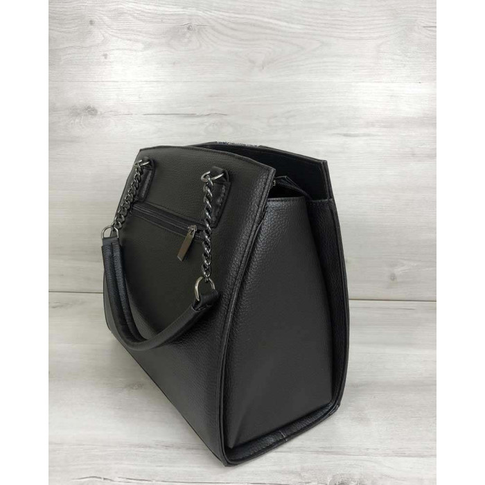 Каркасна жіноча сумка Адель чорного кольору зі вставкою сірий лак WeLassie