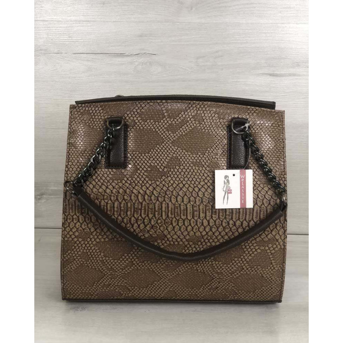 Класична жіноча сумка Welassie, виготовлена з штучної шкіри. Має одне відділення на блискавці. Всередині є кишеня на застібці і відкрита кишеня для мобільного телефону, а також розділові відділення. Є зовнішня кишеня для дрібних предметів. Висота ручок 23 см., тому сумку зручно носити не тільки в руці і на згині логтя, але і на плечі.