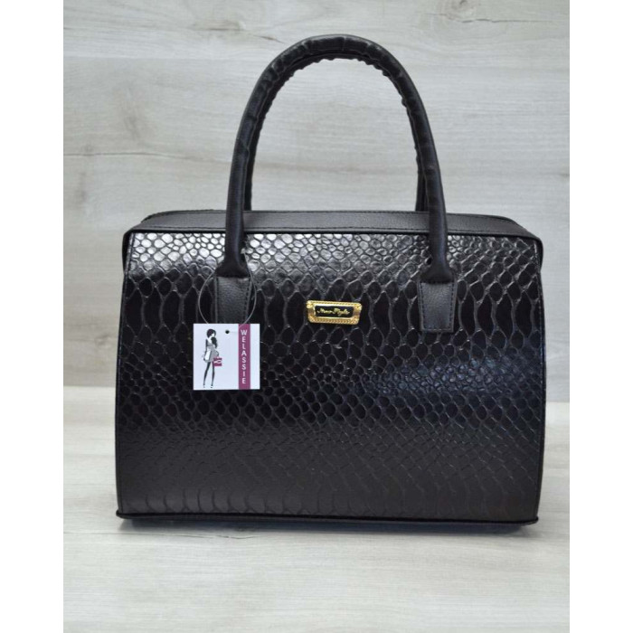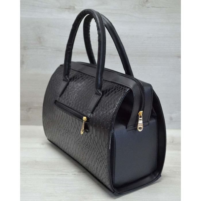 Каркасна жіноча сумка Саквояж чорна кобра WeLassie