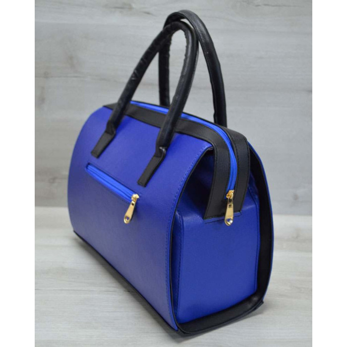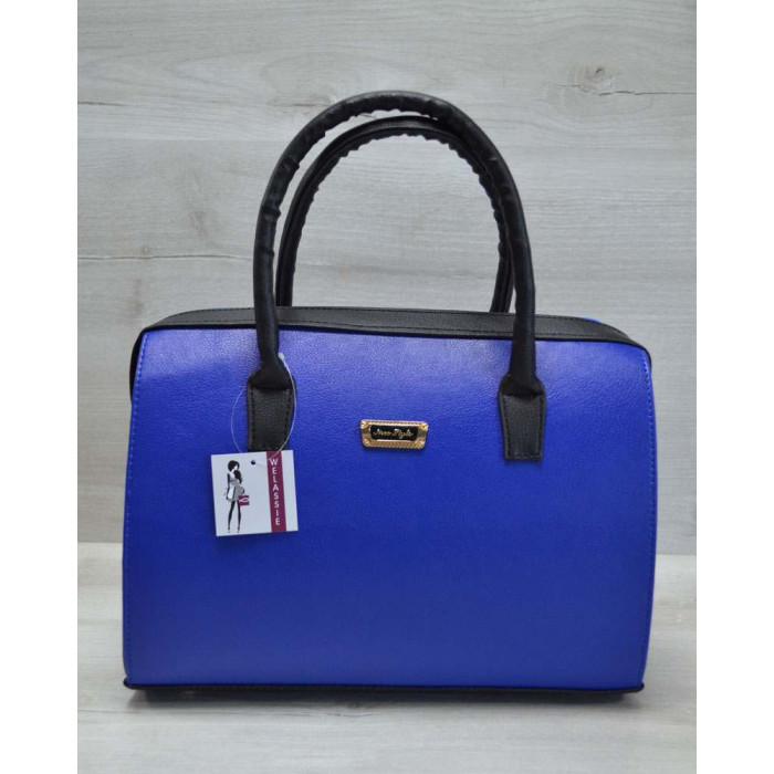 Каркасна жіноча сумка Саквояж електрик гладкий з чорними ручками WeLassie