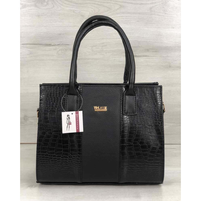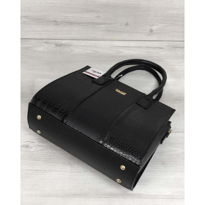 Каркасна жіноча сумка Селін чорного кольору зі вставками чорний крокодил WeLassie