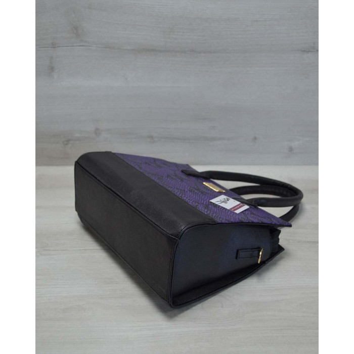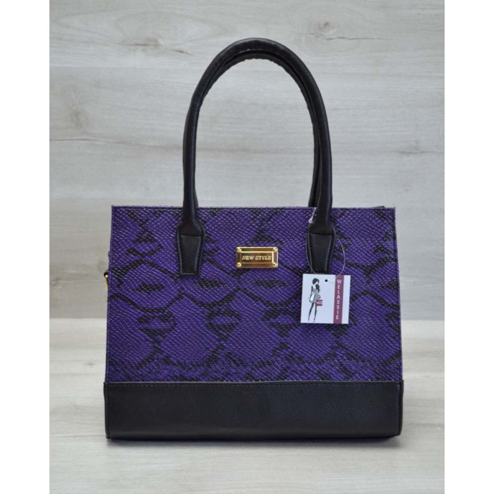 Каркасна жіноча сумка Селін бузкова змія з гладким чорним WeLassie