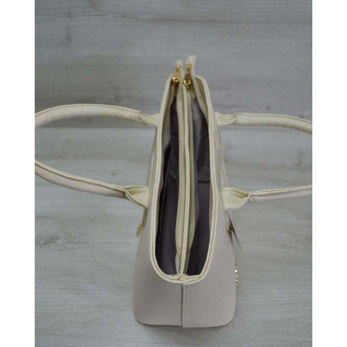 Жіноча, молодіжна сумка WeLassie, виготовлена з штучної шкіри. Має два відділення на блискавці. Всередині є кишеня на застібки і відрита кишеня для мобільного телефону. Є зовнішня кишеня для дрібних предметів. Ручки міцні - висота їх розрахована, щоб носити сумку в руці, або на згині ліктя.