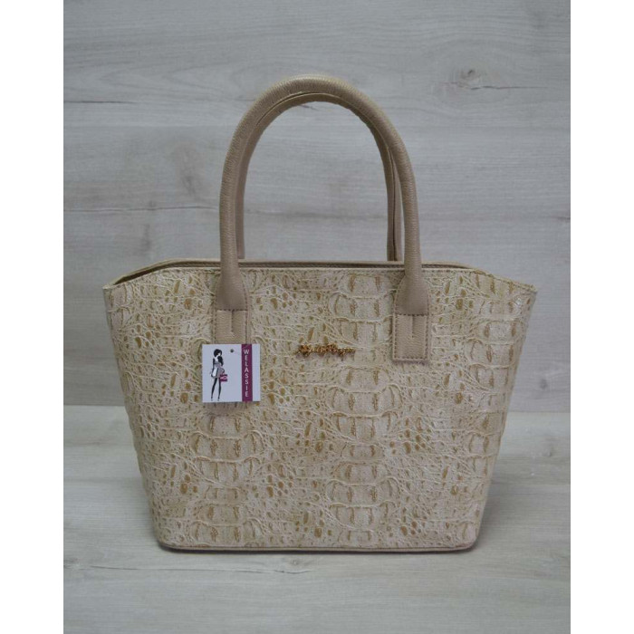 Жіноча, молодіжна сумка WeLassie, виготовлена зі штучної шкіри. Має два відділення на блискавці. Всередині є кишеня на застібки і відрита кишеня для мобільного телефону. Є зовнішня кишеня для дрібних предметів. Ручки міцні - висота їх розрахована, щоб носити сумку в руці, або на згині ліктя.