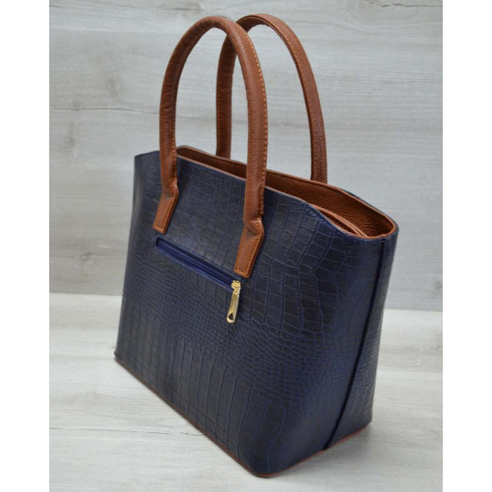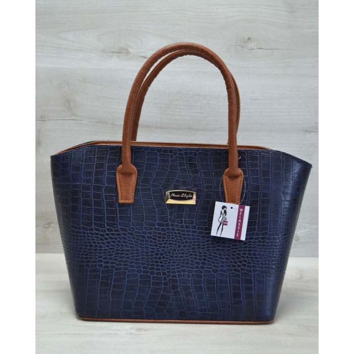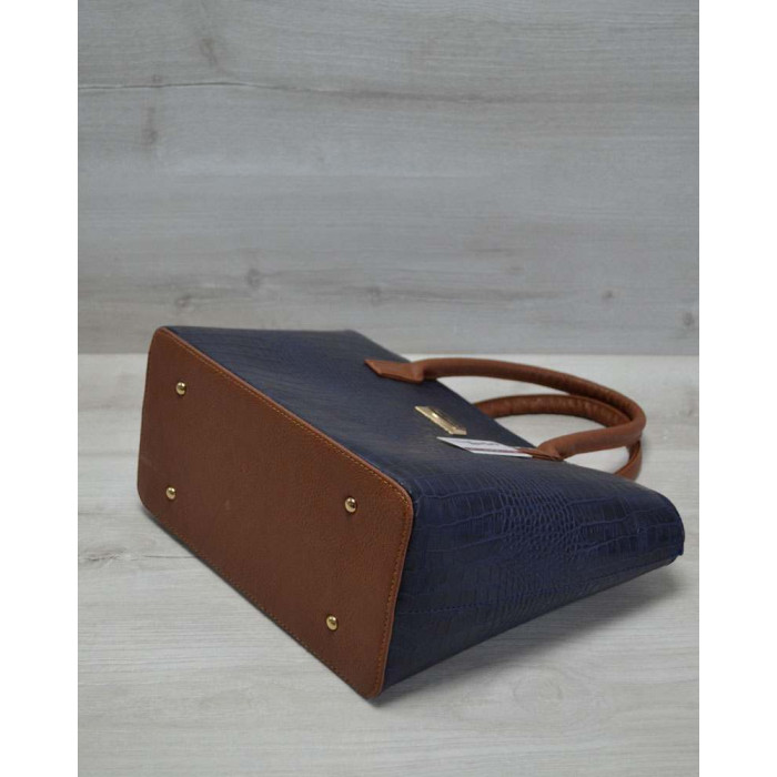 Класична жіноча сумка «Дві змійки» синій крокодил, ручки руді WeLassie