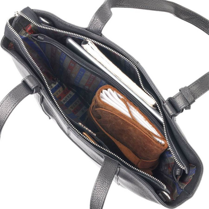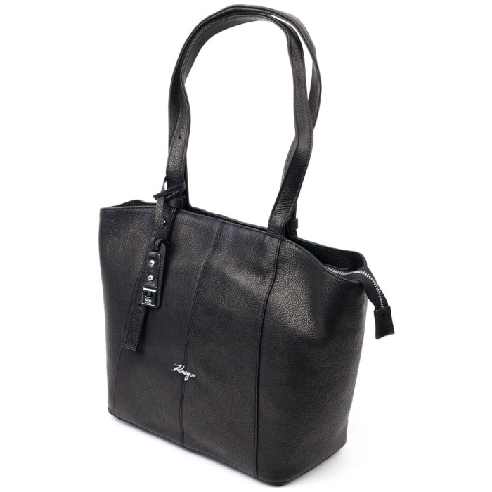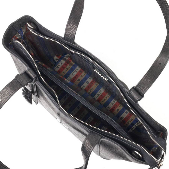 Стильна сумка жіноча з дрібнозернистої натуральної шкіри, в класичному чорному кольорі. Сумка функціональна та зручна в експлуатації, якісна фурнітура не тільки доповнює стильний дизайн сумки, але й захищає виріб. Виріб має міцну підкладку. Аксесуар упакований у фірмовий текстильний мішок Karya. Сумка з натуральної шкіри завжди буде чудовим подарунком будь-якій жінці.