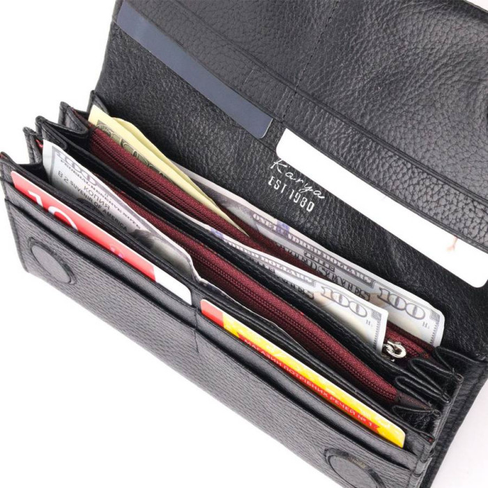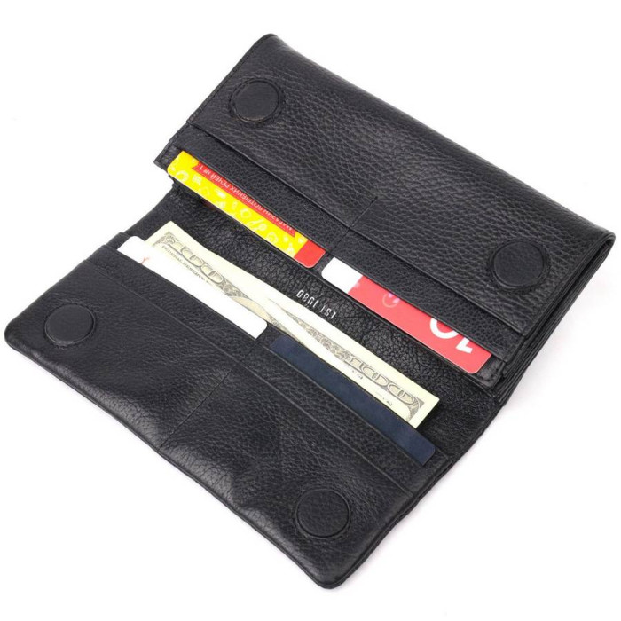 Практичний жіночий гаманець із натуральної зернистої шкіри. Складається аксесуар навпіл, закривається клапаном на магніти. Якісна фурнітура доповнює та прикрашає виріб. Такий гаманець з натуральної шкіри - це ідеальний варіант на кожен день для тих, хто цінує якість, зручність та комфорт, а також чудово доповнюватиме Ваш повсякденний образ. Запакований аксесуар у фірмову коробку та пакет бренду. Вироби з натуральної шкіри завжди будуть чудовим подарунком для близької людини.
