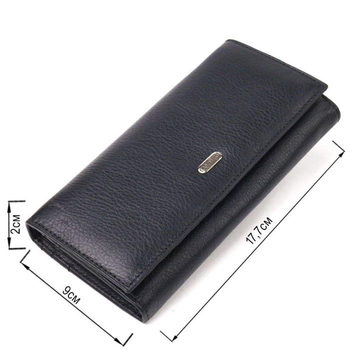 Класичний жіночий гаманець із натуральної шкіри. Аксесуар має три широкі відділення для купюр, з двома перегородками, одна перегородка закривається на блискавку, містку монетницю зовні, чотири приховані кишені та шість кишень для карток. Закривається аксесуар клапаном на кнопку. Якщо Ви хочете порадувати себе та здивувати близьких, то неодмінно купуйте шкіряні аксесуари в нашому магазині, якість і ціна Вас однозначно порадує.