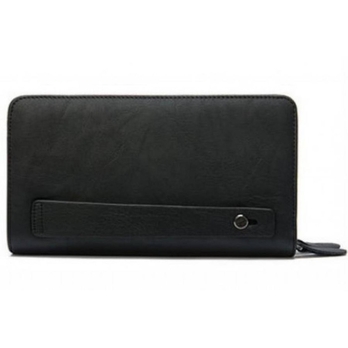 Стильний і місткий чоловічий клатч виготовлений з натуральної шкіри люксового рівня. Доповнена модель надійною металевою фурнітурою золотистого кольору. Клатч має безліч відсіків і кишень, в які зручно покласти не тільки гроші, але і візитки, телефон, документи та ключі. Клатч можна носити як в руці, так і на зап'ясті за допомогою ручки-петлі, яка регулюється за об'ємом руки. Дана модель має два основних відділення і накладну кишеню з лицьового боку. Одне відділення призначене для грошей: в ньому два відсіки, розділені кишенею-перегородкою на блискавці для монет. Інше відділення має безліч слотів для банківських карт і в нього можна покласти документи.