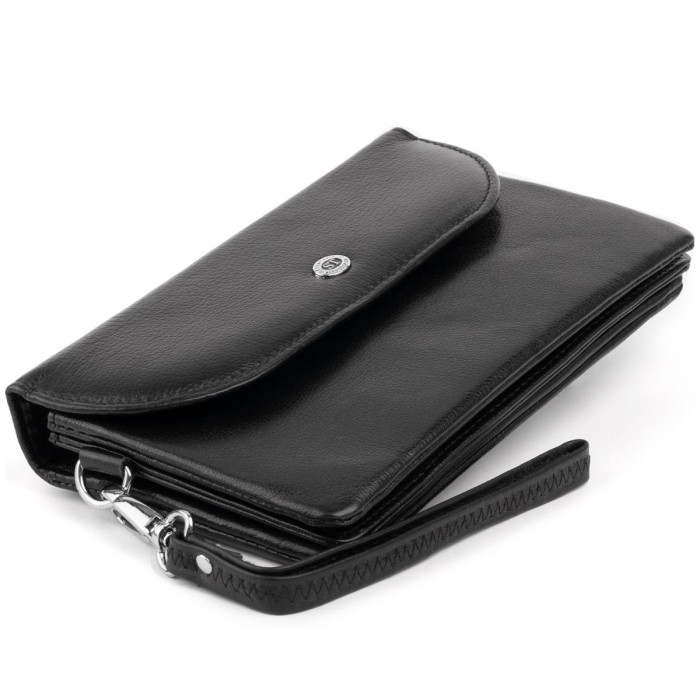 Місткий і стильний клатч з натуральної шкіри високої якості. Аксесуар ідеально підійде на вечірку. Модель оптимального розміру і носиться як в руках, так і на зап'ясті. Шкіра має природну текстуру і легкий запах. На лицьовій стороні металевий логотип бренду. У клатч з легкістю поміститься мобільний телефон і документи. Аксесуар в гладку шкіру. Місткі кишеньки зручно розмістять всі ваші особисті речі. Внутрішнє оздоблення: поєднання щільного чорного текстилю та натуральної шкіри. Аксесуар упакований в фірмову коробку. Клатч стане найкращим подарунком для будь-якої дівчини і найголовніше необхідним.