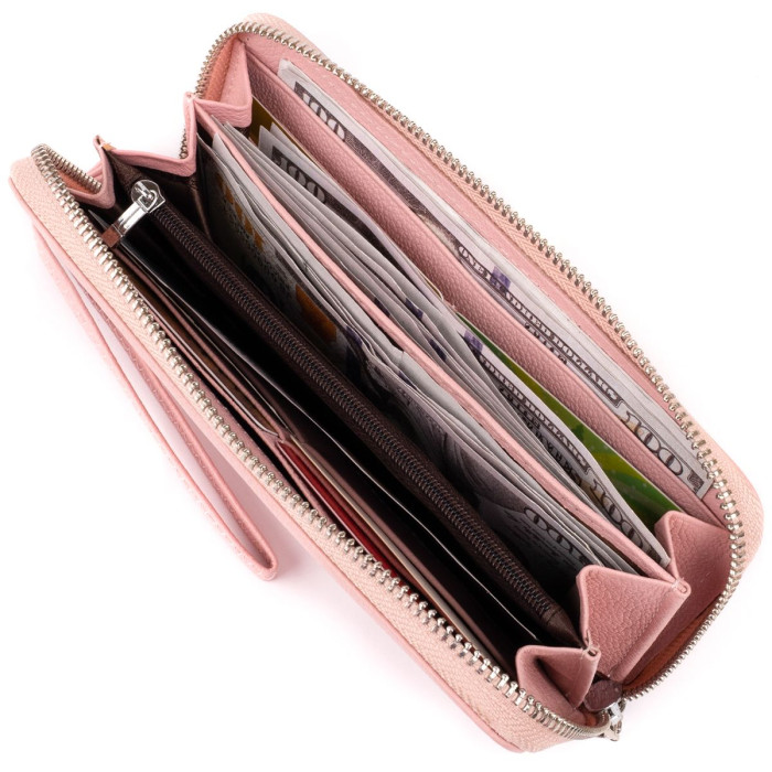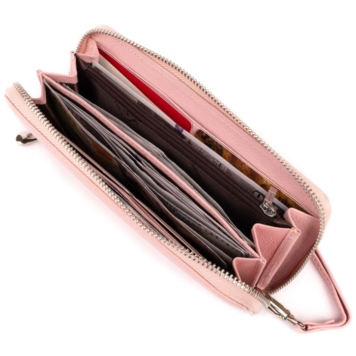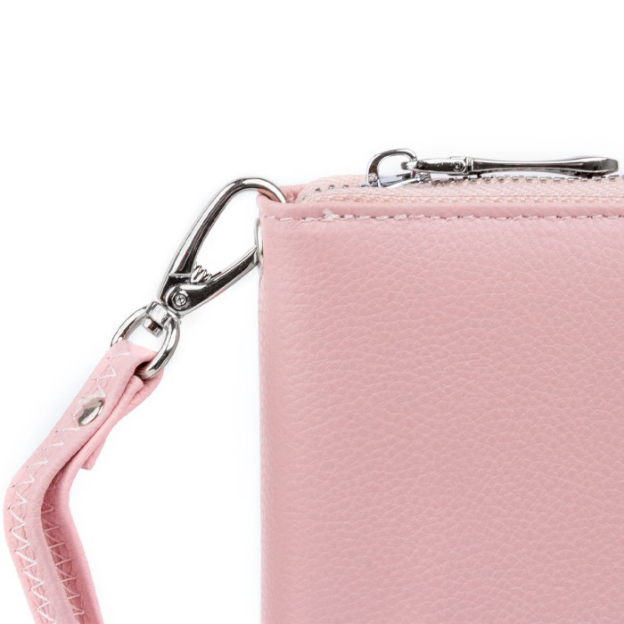 Шкіряний жіночий клатч ніжного рожевого кольору. Виріб додасть вам жіночності і легкості. Ви можете носити клатч на зап'ясті за допомогою ремінця-петельки. Виріб виконаний зі шкіри, яка має легко виражену текстуру. На дотик дуже м'яка і еластична. При бажанні ви зможете покласти в клатч смартфон невеликого розміру. Виріб замінить вам сумочку на вечірці. Ми впевнені, що володарка даної моделі залишиться задоволена вибором. У комплекті йде фірмова картонна упаковка.