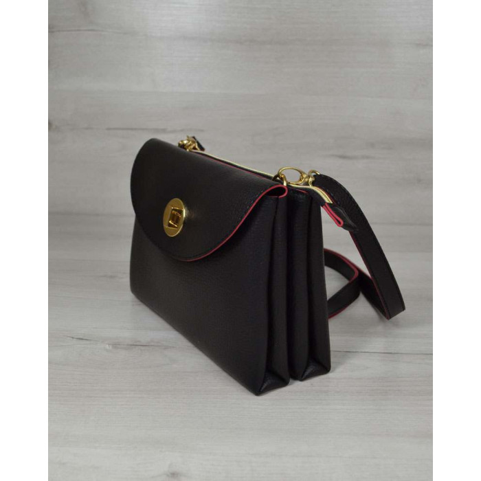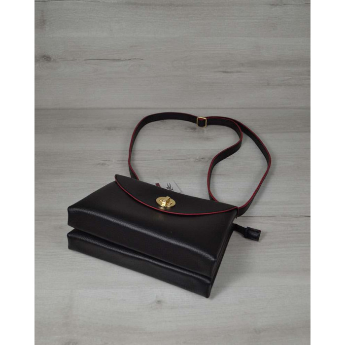 Чорний клатч WeLassie, виготовлений з штучної еко-шкіри високої якості. Еко-шкіра морозостійка, еластична, щільна. Клатч має одне відділення на блискавці і одне відділення на клапані. Всередині є додаткова кишеня на застібці для дрібних предметів. Ремінець регулюється під різну довжину.