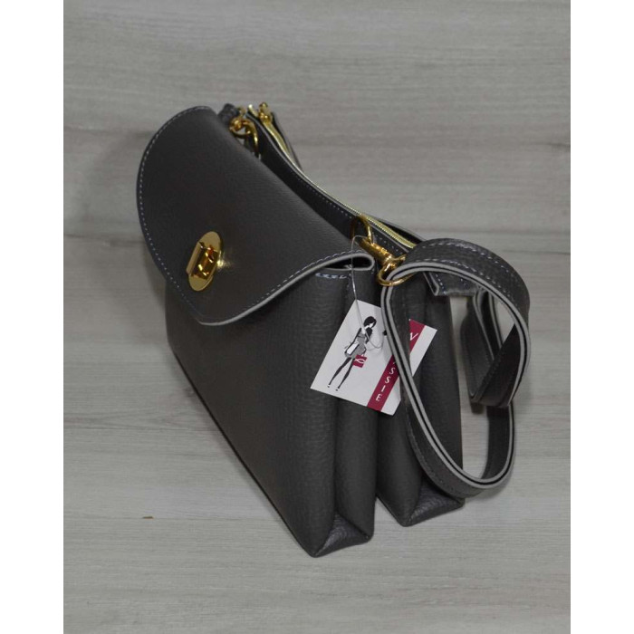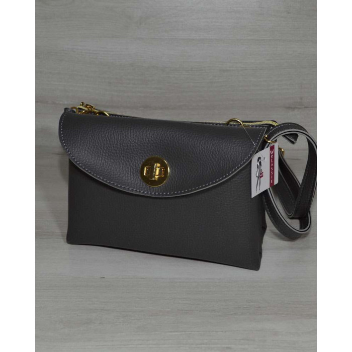 Жіночий сірий клатч WeLassie, виготовлений з штучної еко-шкіри високої якості. Еко-шкіра морозостійка, еластична, щільна. Сірий клатч має одне відділення на блискавці і одне відділення на клапані. Всередині є додаткова кишеня на застібці для дрібних предметів. Ремінець регулюється під різну довжину.