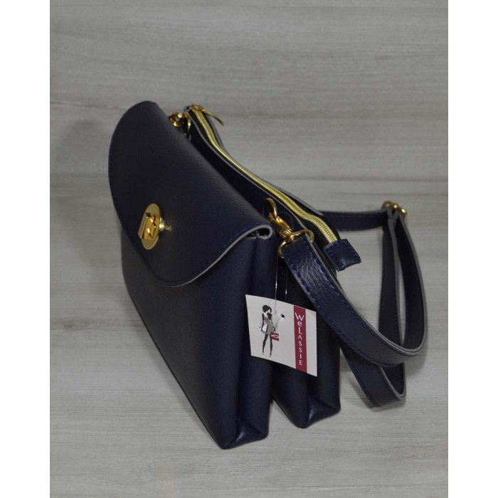 Клатчі від виробника на два відділення синього кольору WeLassie , виготовлені з штучної еко-шкіри високої якості. Еко-шкіра морозостійка, еластична, щільна. Клатч має одне відділення на блискавці і одне відділення на клапані. Всередині є додаткова кишеня на застібці для дрібних предметів. Ремінець регулюється під різну довжину.