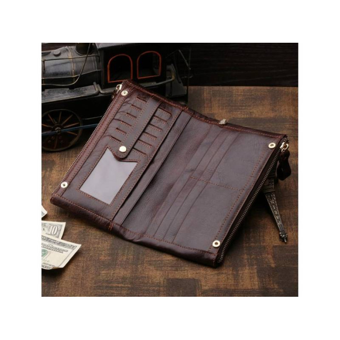 - між головними відсіками знаходяться секції для візиток з красивим клапаном на кнопці, місткі відділення для грошей;