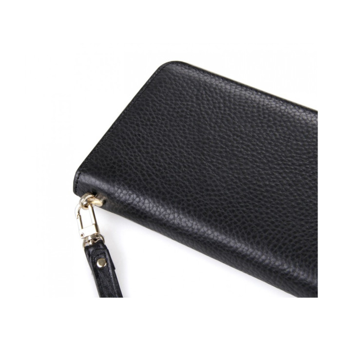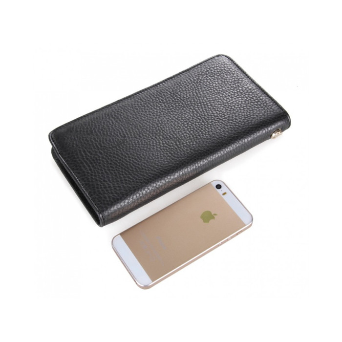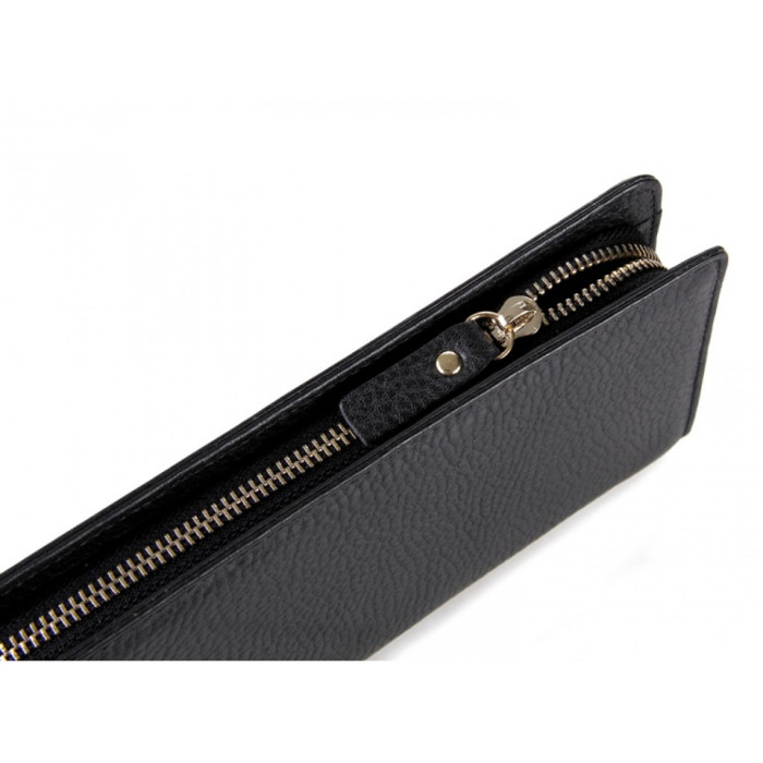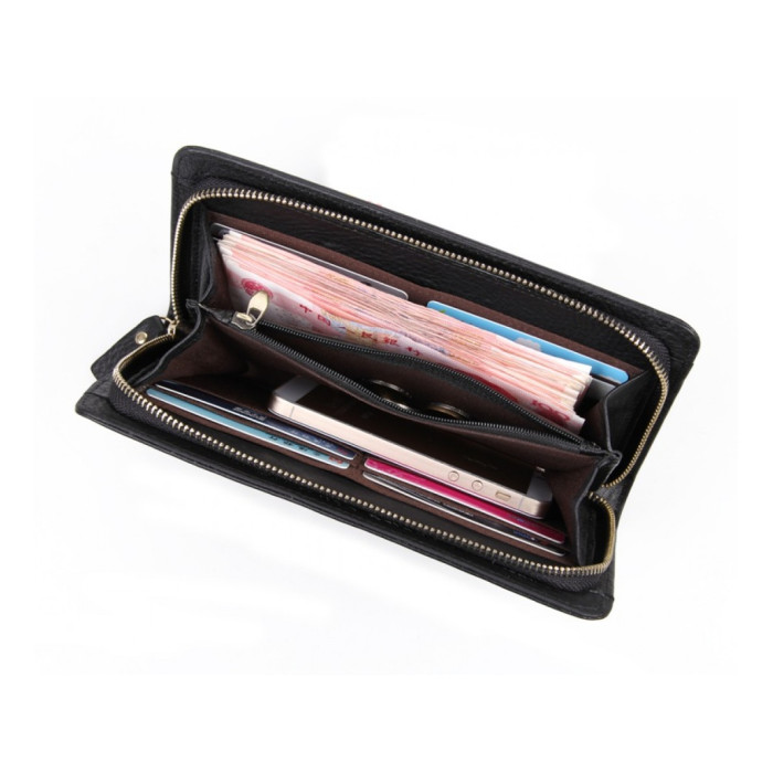 - основний відділ закривається замком і має м'яку перегородку на змійці, два містких секції, дві кишені відкритого типу та вісім відділів під візитні картки;