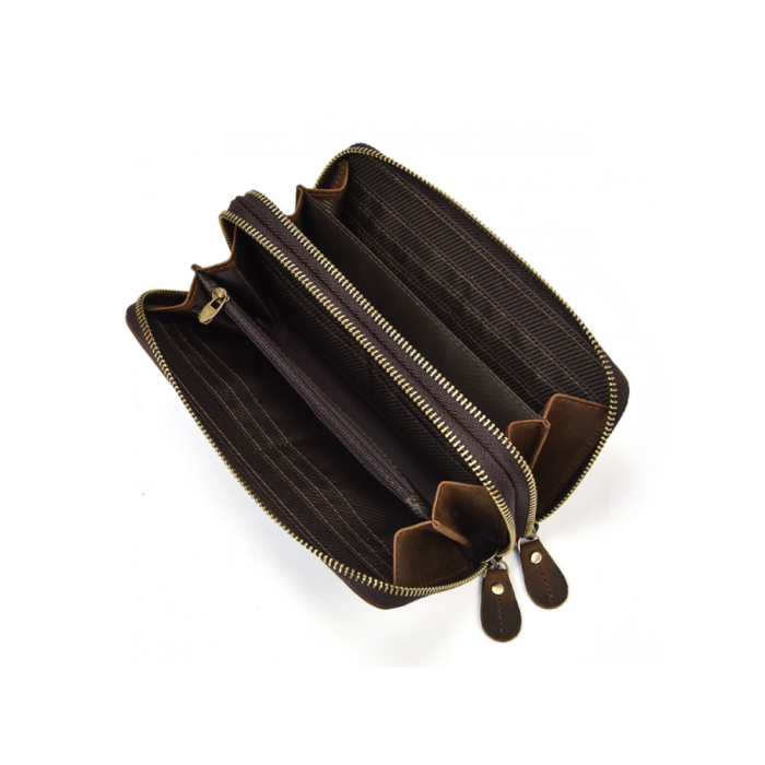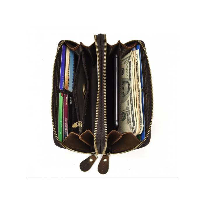 - 1й відділ: два одлела під купюри розділені кишенею на блискавці під дрібниця, 6 слотів під картки.
