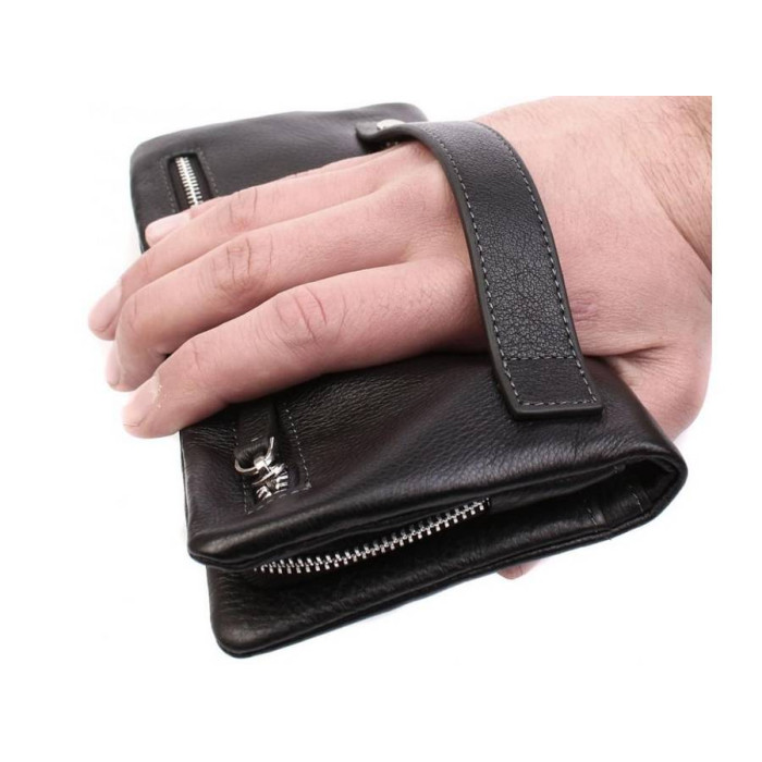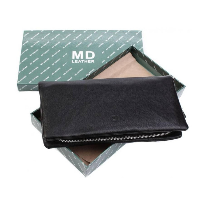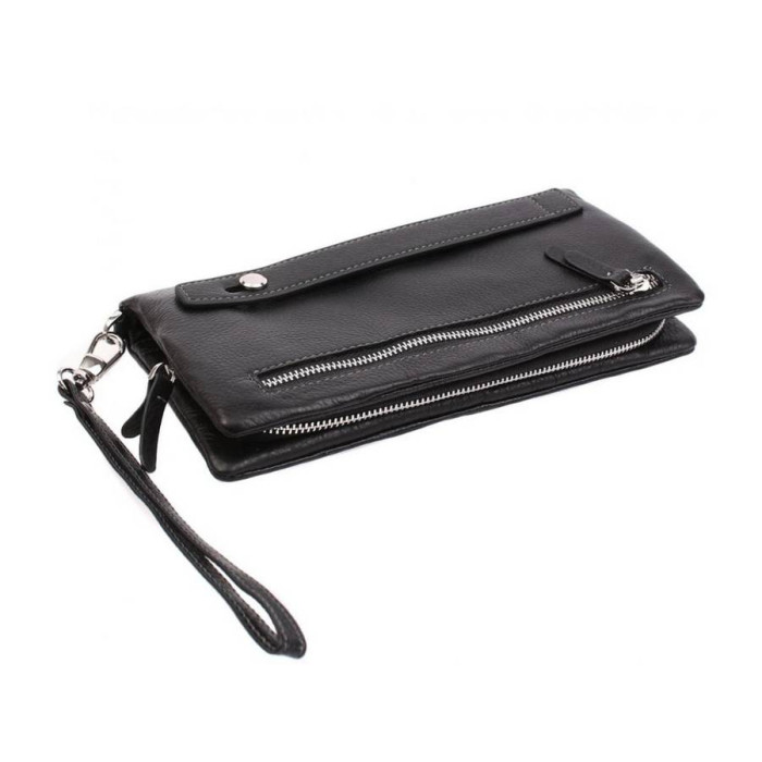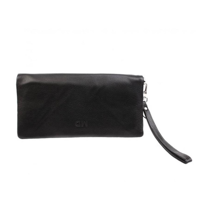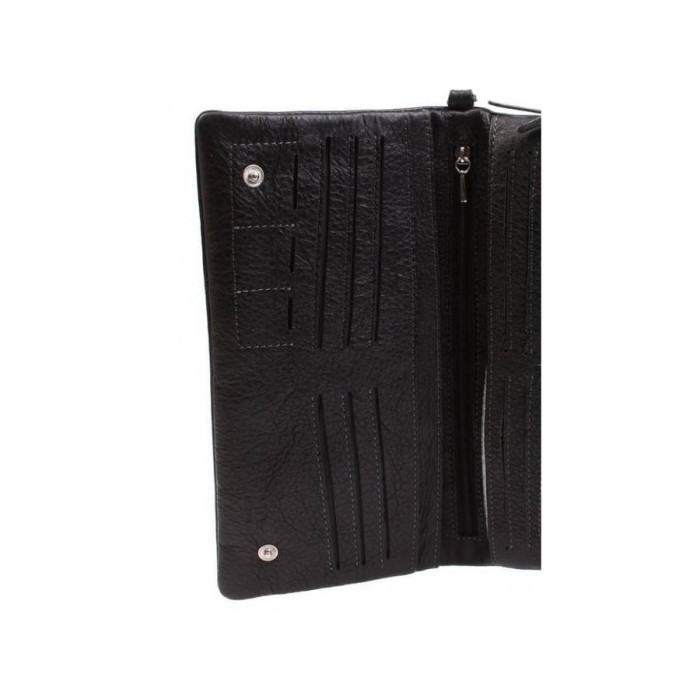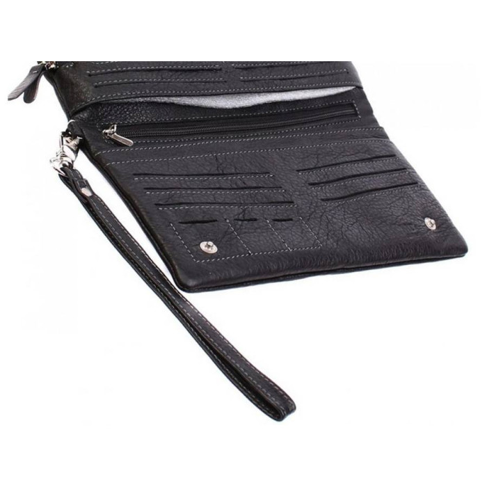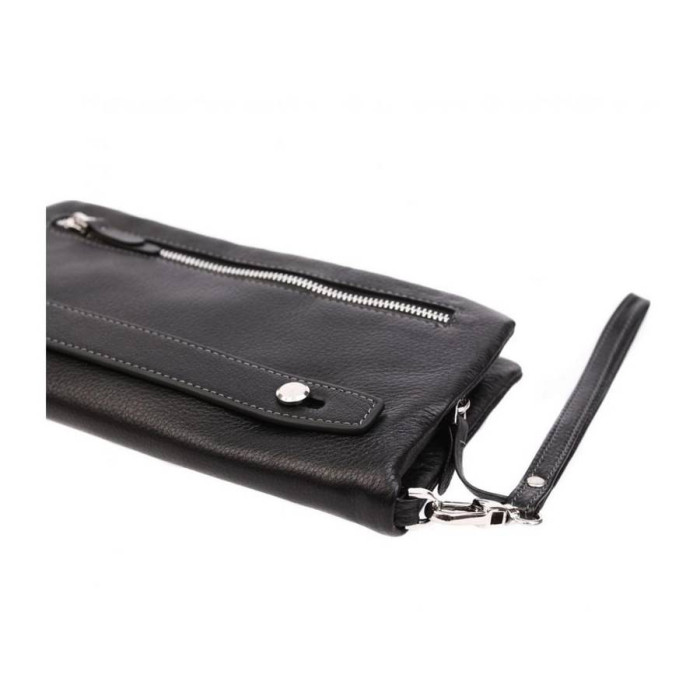- чорний клатч з натуральної шкіри теляти, отримав одне головне відділення, яке закривається двома кнопками;